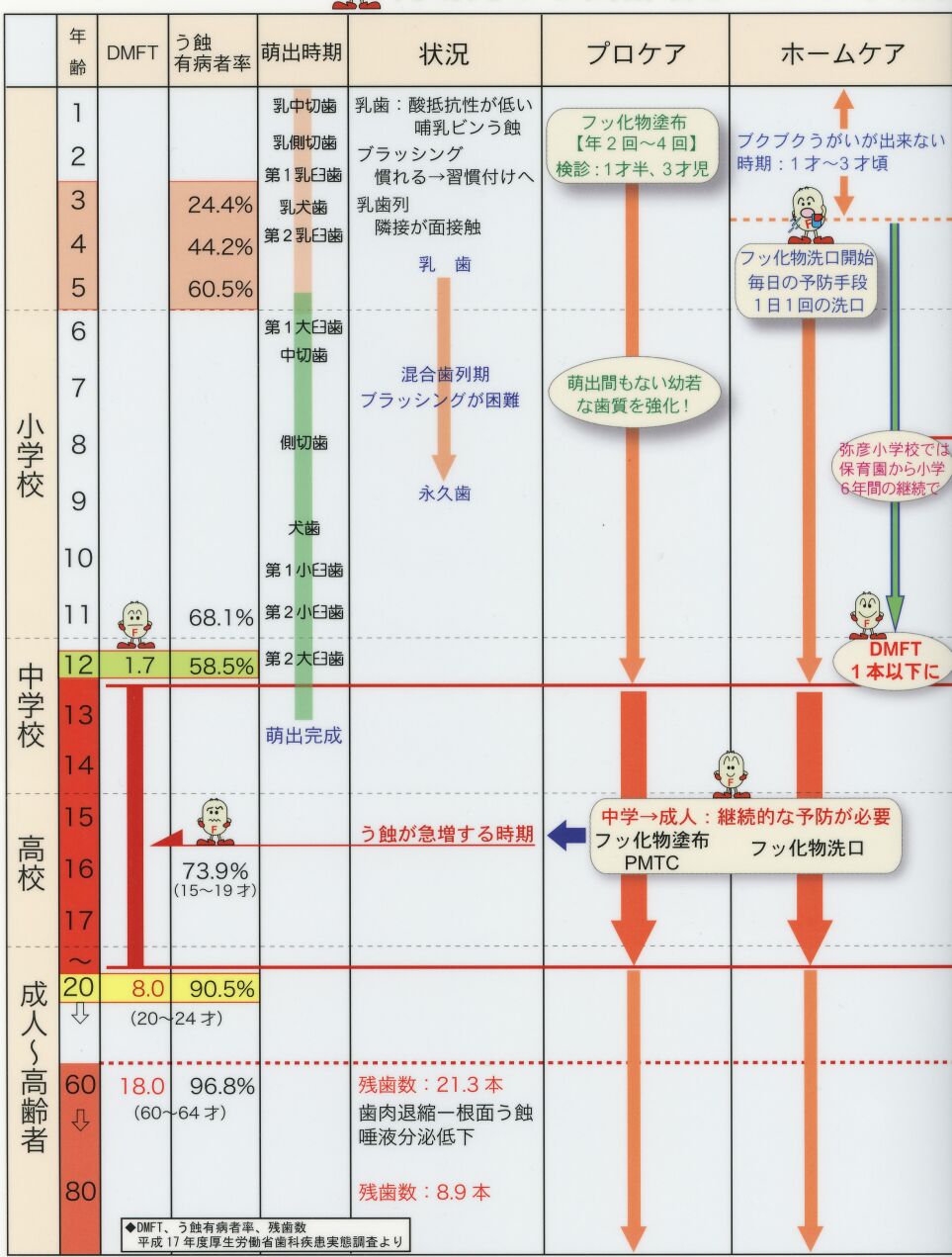 先日のデンタルショーでもらった資料の中から フッ化物の利用に関しての図表がありましたので アップいたします。